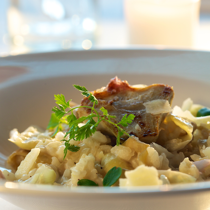 ◆切塊的朝鮮薊, 經過炙燒處理,加入綜合香草調味