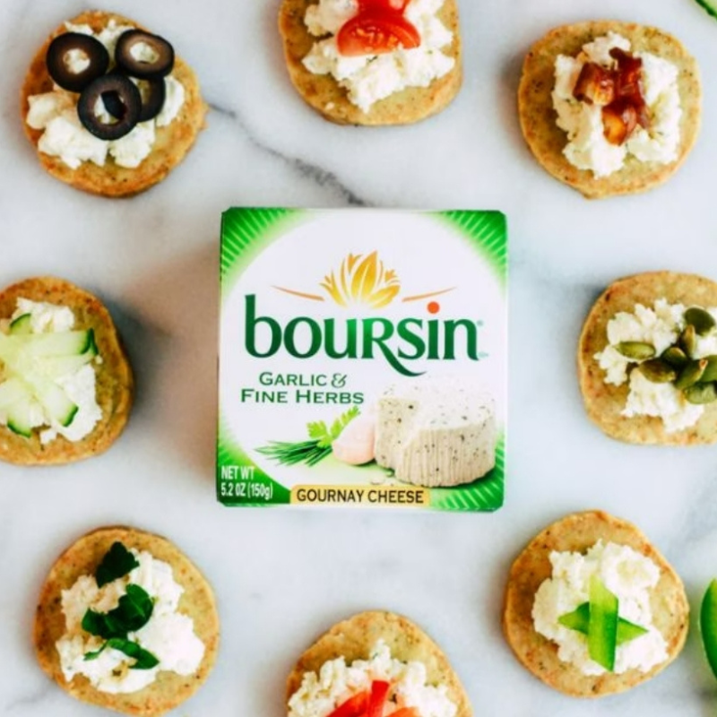◆Boursin 布爾辛源自於法國諾曼地區,由於乳脂含量高質地綿密,如同奶油乳酪Cream cheese的口感大受歡迎。