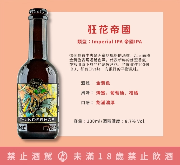 ◆苦度值達100個 IBU和8.7%酒精濃度完成這瓶相當「危險」的啤酒,幸好,她還有強大的適飲性