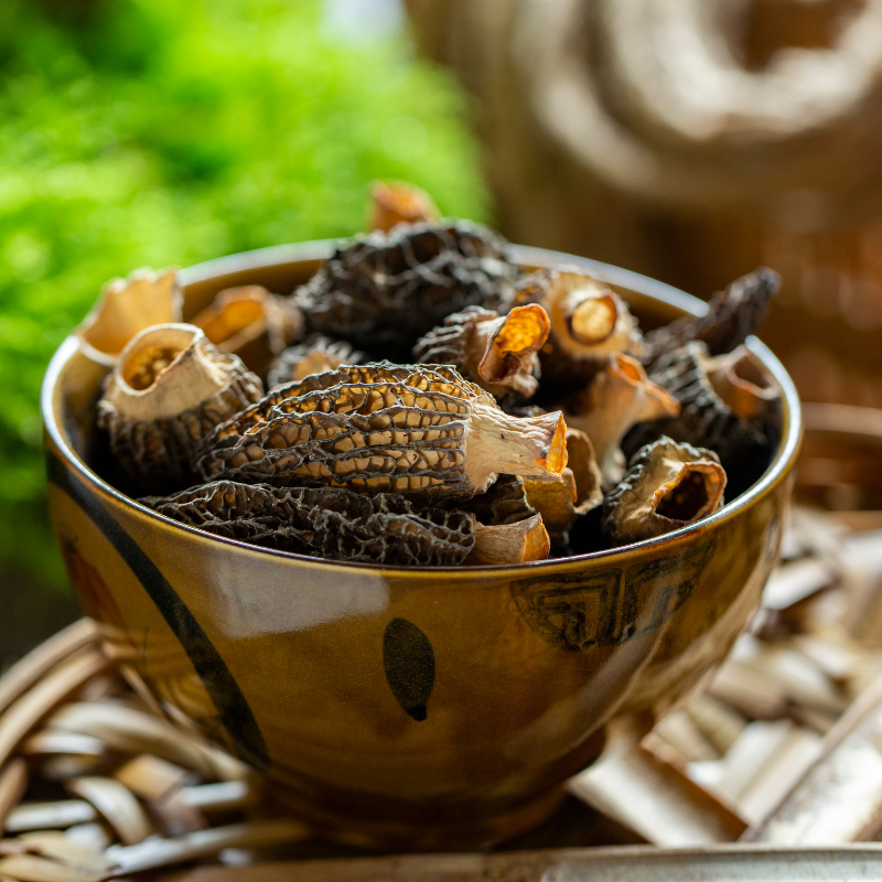 ◆乾燥羊肚菇乾燥後,香氣比新鮮版本更加濃縮,帶有濃烈的堅果香、泥土氣息與一絲煙燻感。