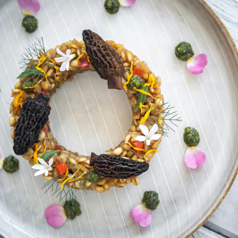 將回水後的羊肚菇切塊,與浸泡液一起加入燉飯或奶油義大利麵,能提升整體香氣層次。