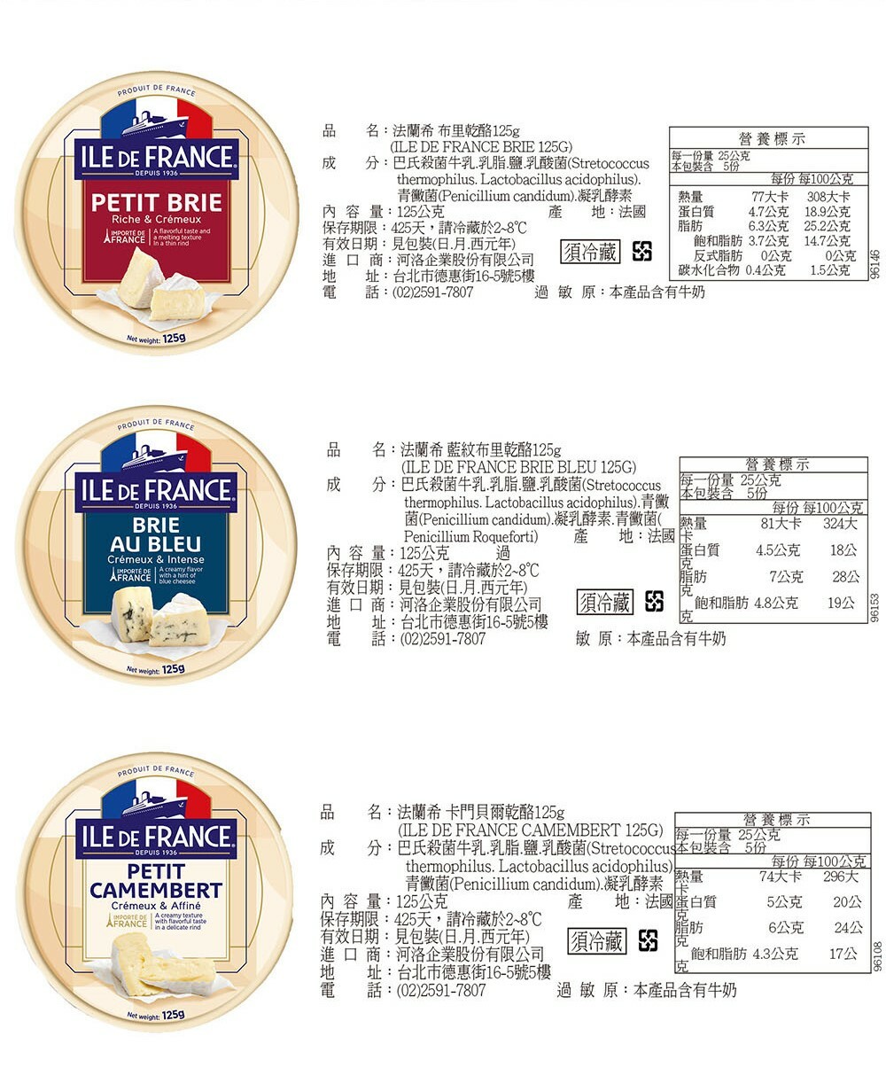 巴氏殺菌牛乳、乳脂、鹽、乳酸菌、青黴菌、凝乳酵素