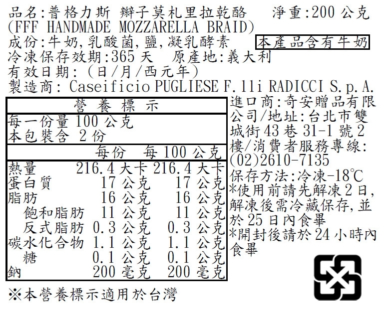 品名:普格力斯辮子莫札里拉乾酪