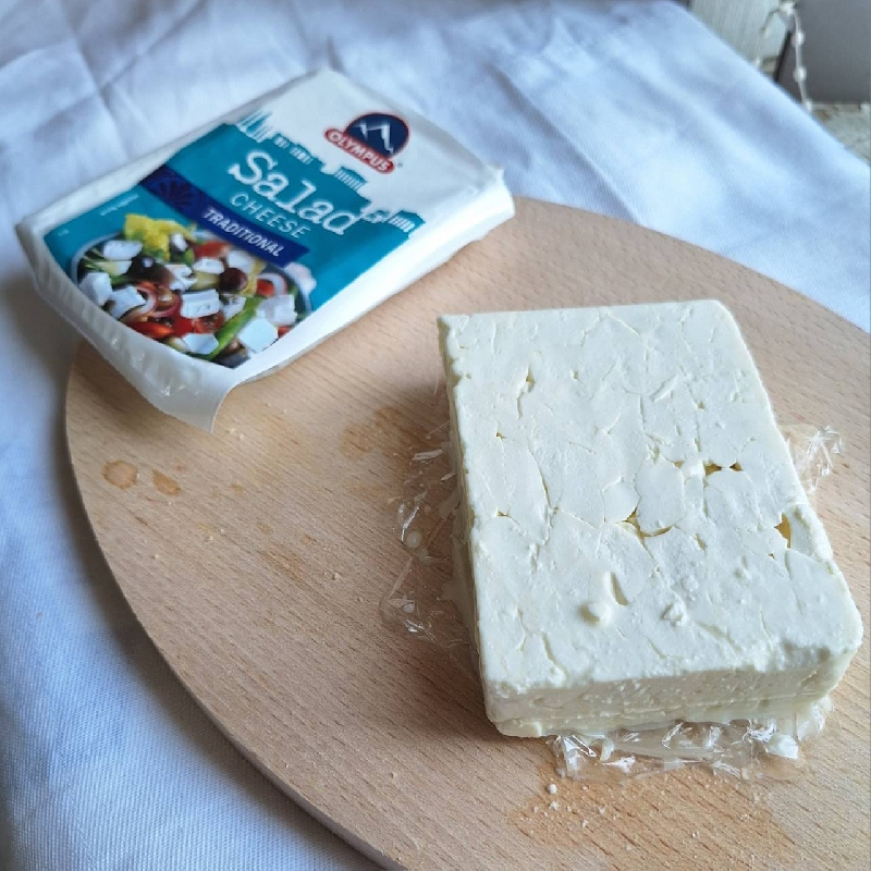 - 將費塔乾酪與切塊的甜椒、小番茄、橄欖、紅洋蔥混合,淋上橄欖油和一點鹽巴與黑胡椒。