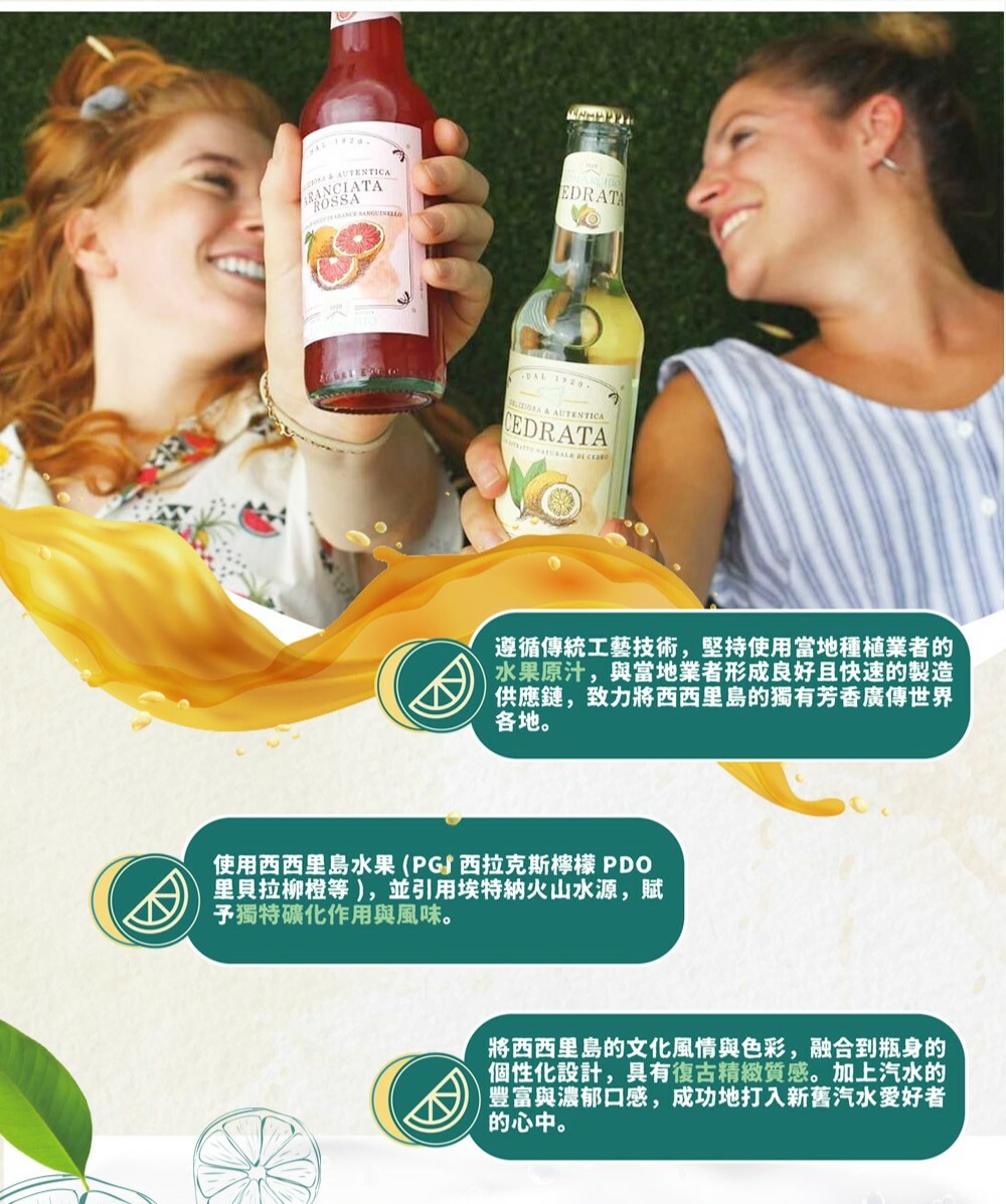 ◆選用西西里陽光下最好收成的水果,取第一次壓榨最佳的風味和營養